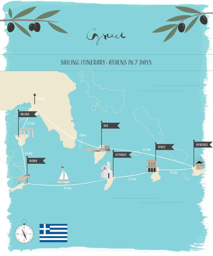 The port city of Pireas (Piraeus) is a short journey from Athens, the capital city of Greece and one of the world’s oldest cities, where you may like to begin your trip. Aegina is one of the Saronic Islands, once a competitor to Athens in a bygone era, this stunning Greek island is laden with ancient relics and being in such close proximity to Athens, is popular with both tourists and Athenians alike. Offering both sandy and pebbled shores, Aegina is home to areas of pinewood to the North, olive and most notably pistachio groves in the West and offers a plethora of must-see archaeological sites, including the magnificent Doric Temple of Aphaia and the Temple of Apollo in town of Kolona to the West. Both Aegina harbour and the smaller harbour of Souvala in the North offer great stop over areas to anchor.